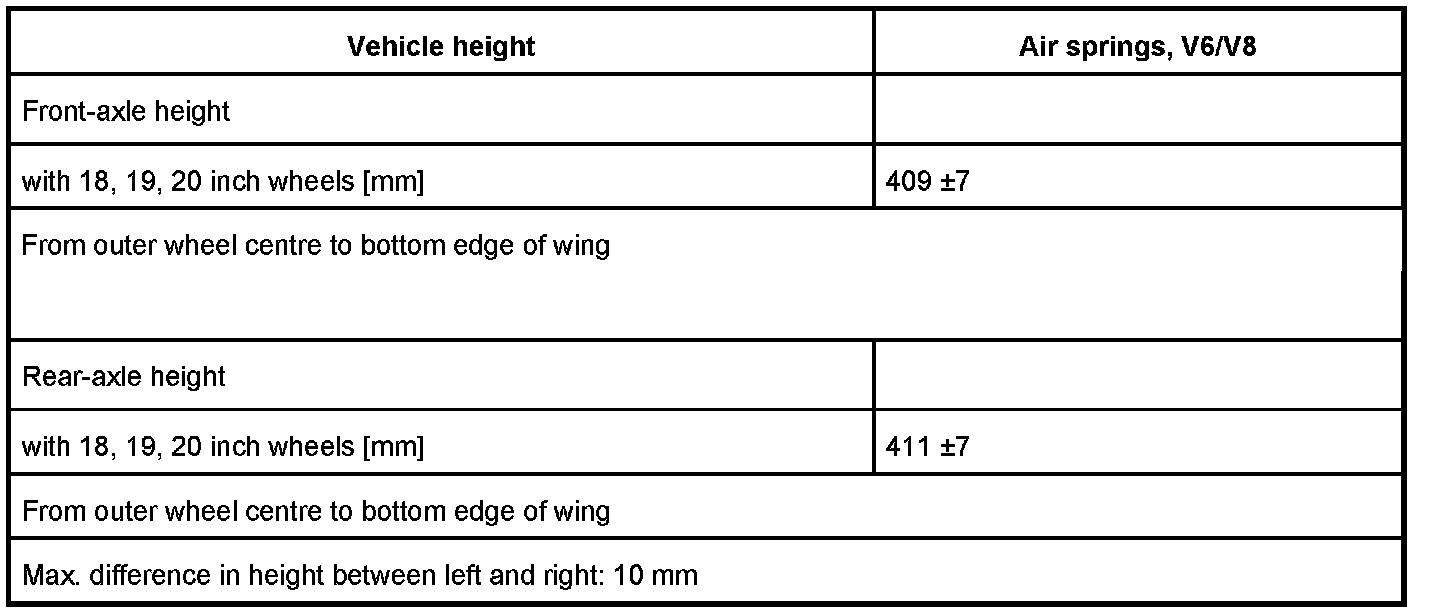 Vehicle height with steel springs, V6/V8