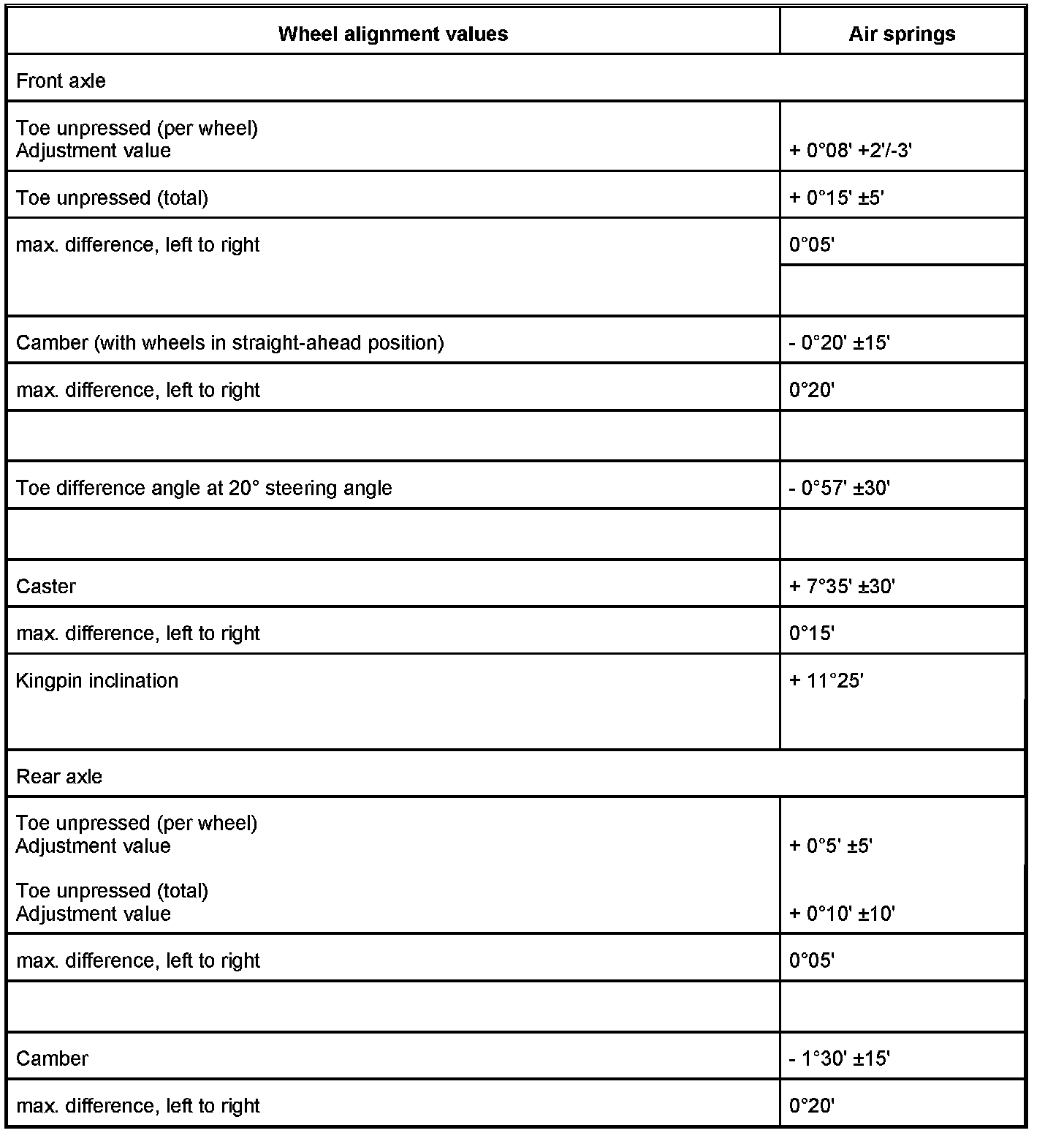 Wheel alignment values, air springs