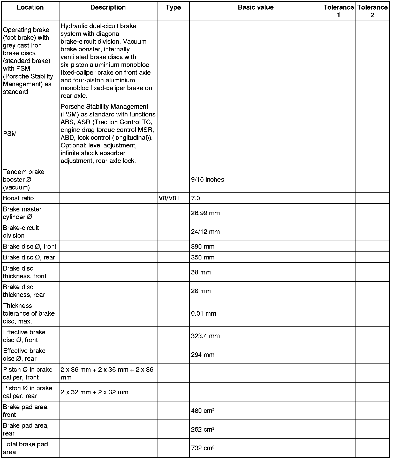 Test values and wear limits for Panamera V8 Turbo brake system