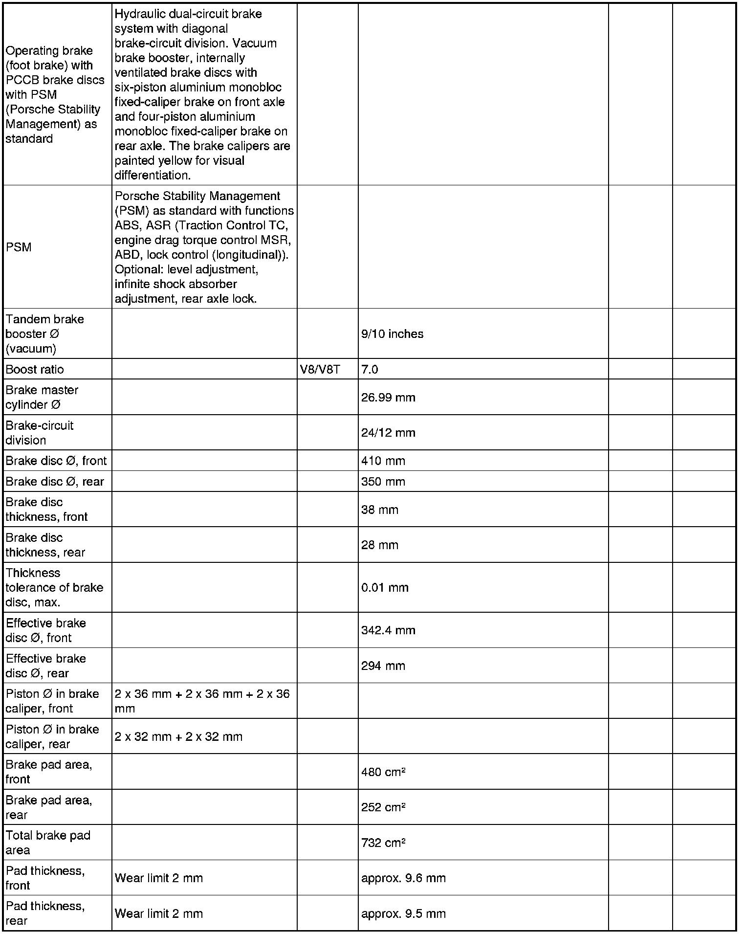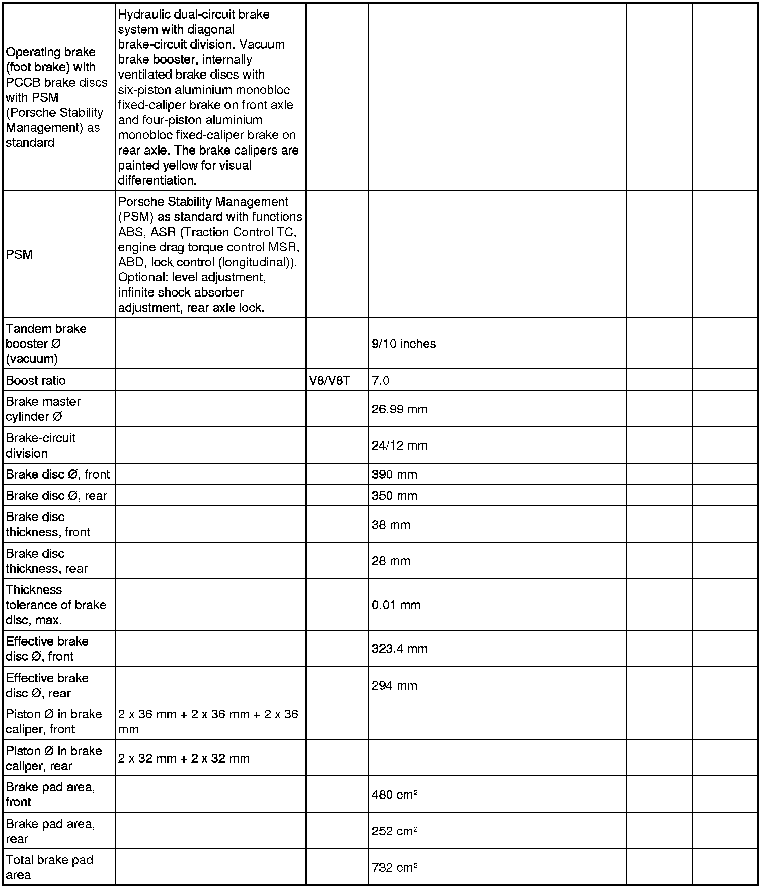 Technical data - Panamera V8 Turbo PCCB brake system