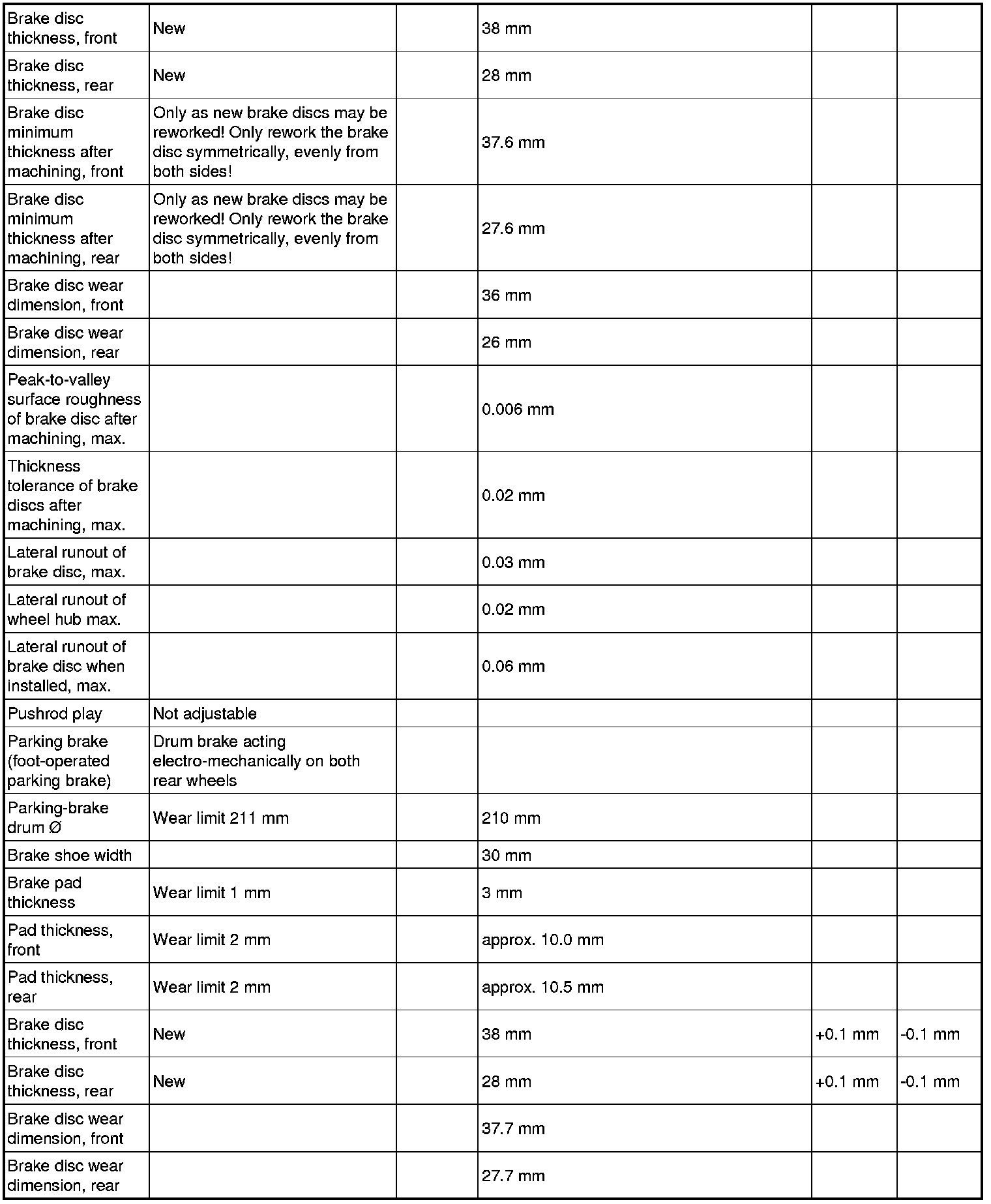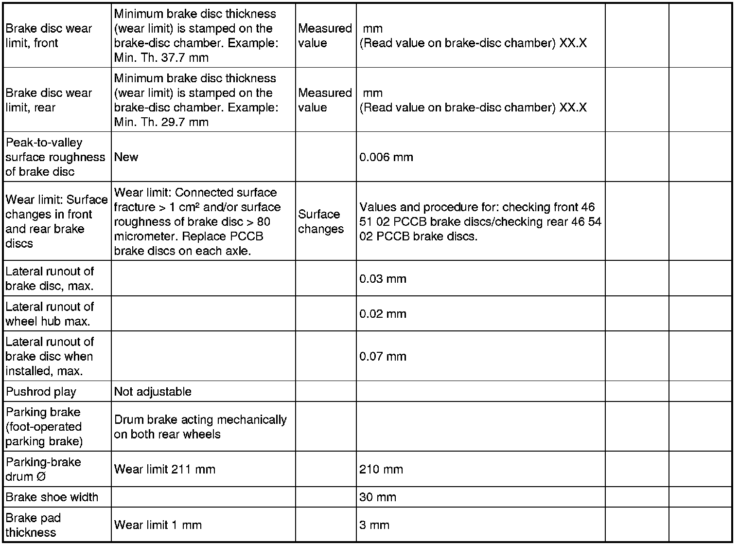 4650TW Technical data/Brake wear limit