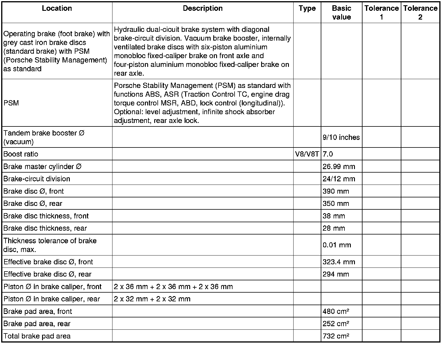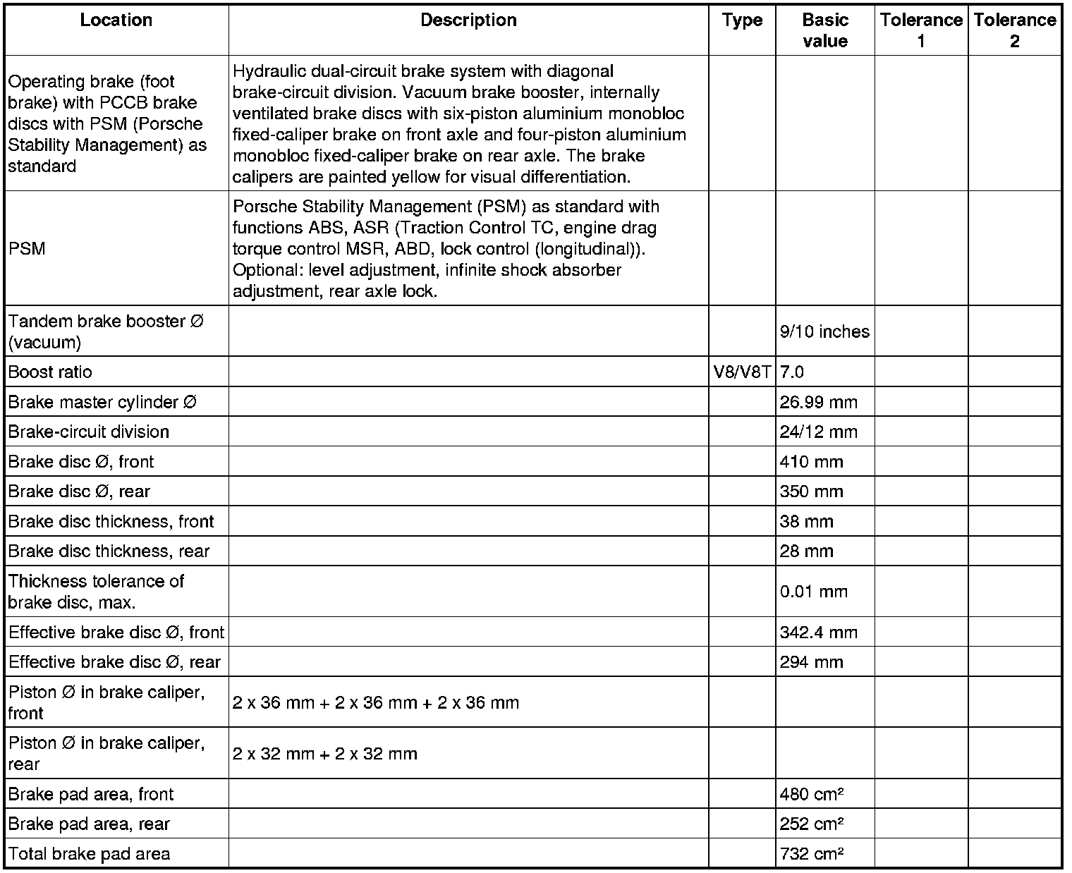 Technical data - Panamera V6 / V8 PCCB brake system