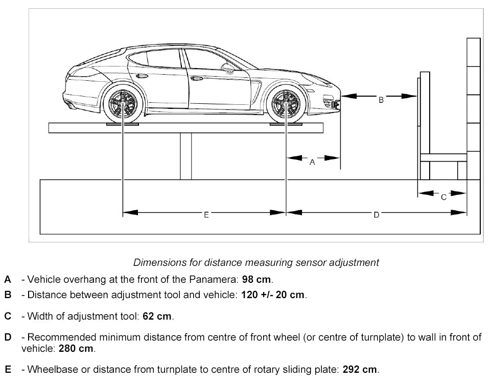 - The distance between the adjustment tool and the vehicle must be approx. 120 cm.