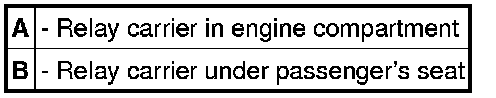 1.2. Lift relay carrier in engine compartment up and out -arrow B-.