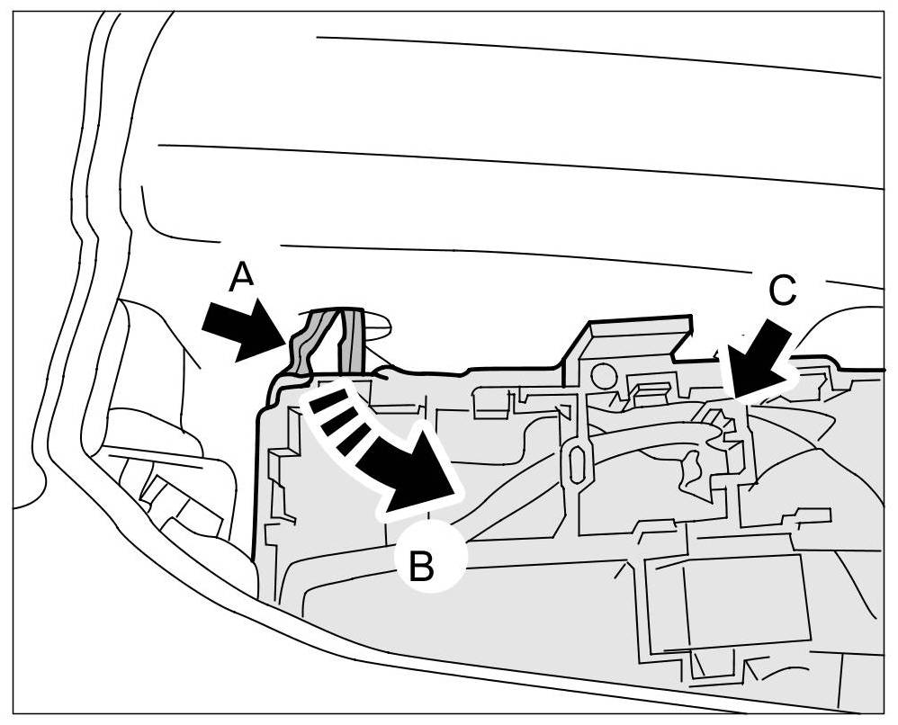 3.3. Pull retaining lug out of the locking mechanism -arrow C-.