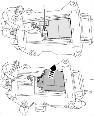 2. Secure ELV control unit with the fastening screw -1-. -> Tightening torque: 3.6 Nm (2.5 ftlb.)±0.5 Nm (±0.5 ftlb.)