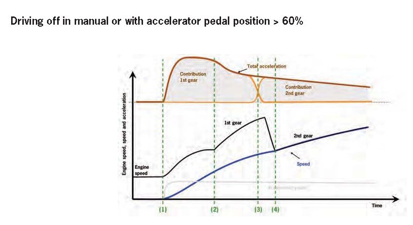 Driving off in manual or with accelerator pedal position more than 60%