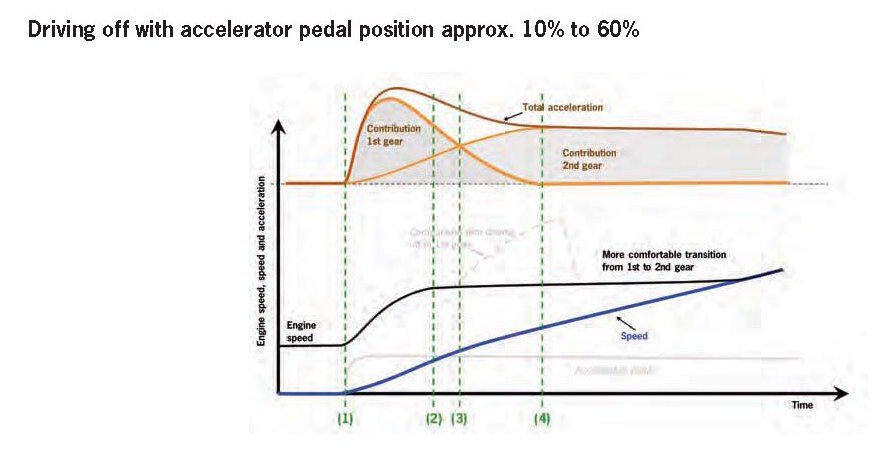 Driving off with accelerator pedal position approx. 10% to 60%