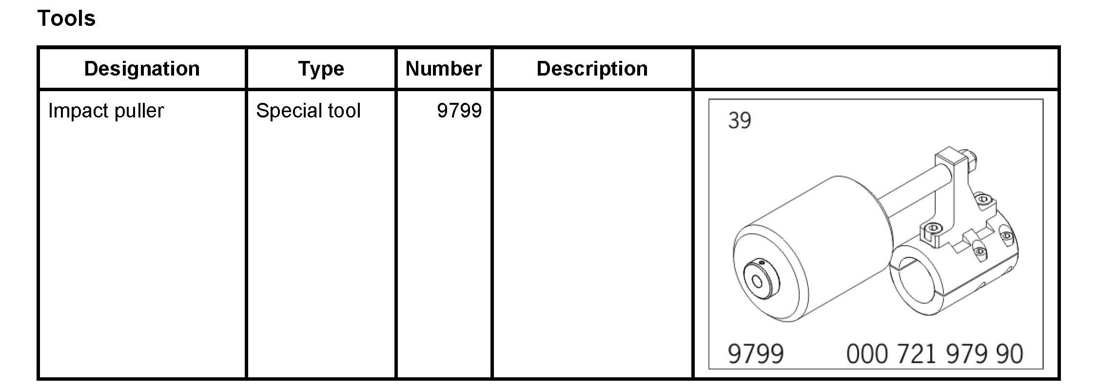 10. Impact puller 9799 must be fitted at the groove in the connecting shaft using 4 screws.