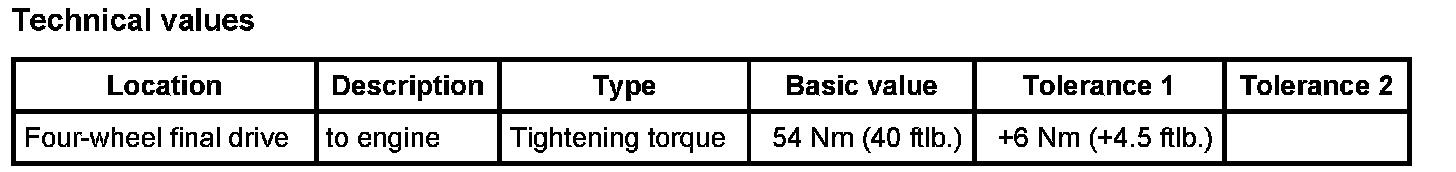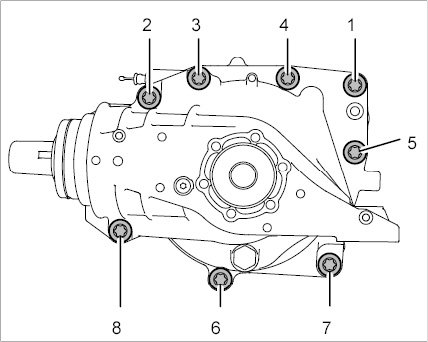 2. Tighten fastening screws for four-wheel final drive in the prescribed sequence. -> Tightening torque: 54 Nm (40 ftlb.)+6 Nm (+4.5 ftlb.)
