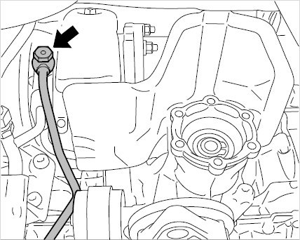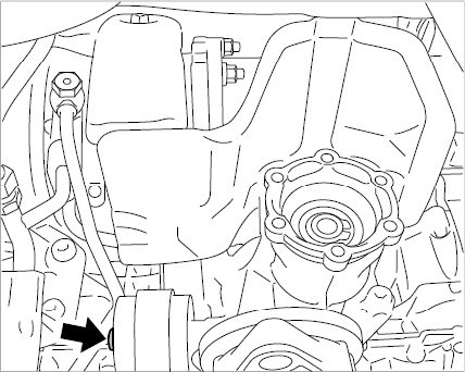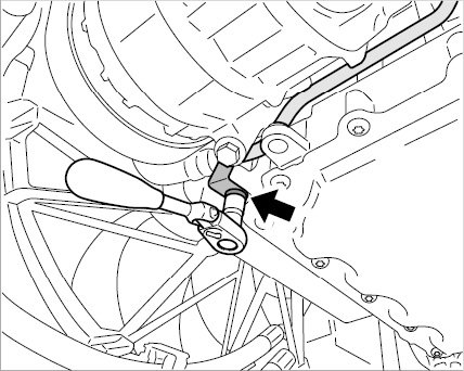 6. Detach cross shaft engine carrier from engine and pull it out by approx. 20 cm by twisting it.