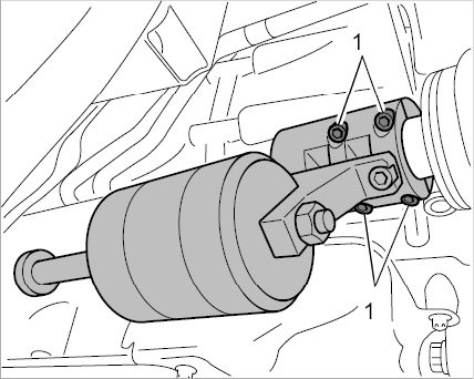 9. Impact puller 9799 must be fitted -1- at the groove in the connecting shaft using 4 screws.