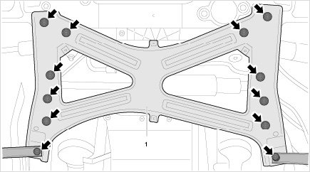 4. Insert upper fastening screws at cross shaft engine carrier.
