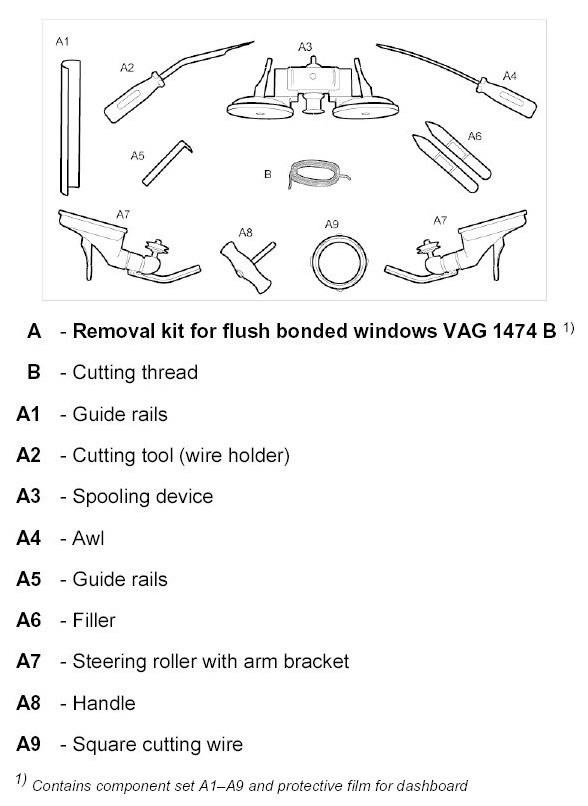 - The following instructions describe the general procedure for removing car windows with the glass separating tool VAG 1474 B.
