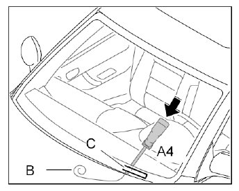 3.1. Push through adhesive bead on the glass on the edge of the vehicle identification number -C- with the awl -A4- from the inside to the outside.