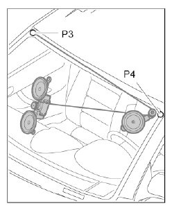 3.5. Draw cutting thread -B- approx. 1m into the passenger compartment.