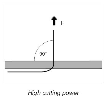 INFORMATION: The power for separating the glass is weaker when the cutting thread is deflected to its maximum point. An angle greater than 90° should be avoided.