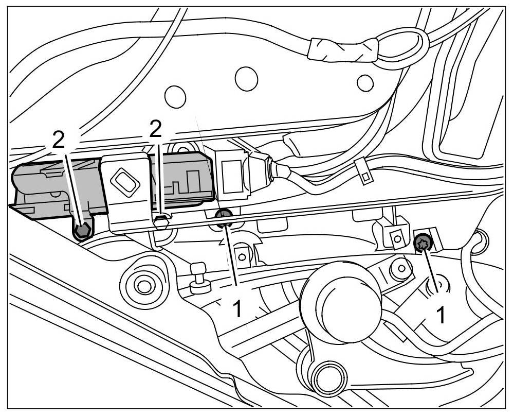 4.2. Unscrew both fastening screws -2- on the engine control unit.