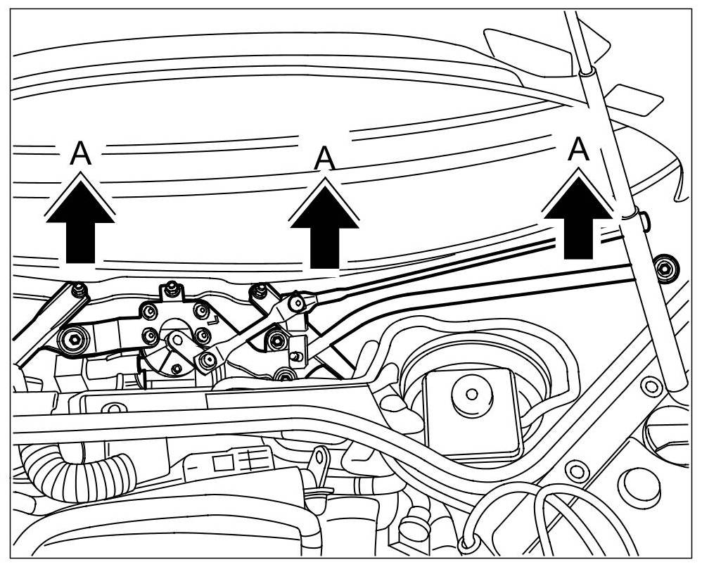6. Lift up wiper linkage and wiper motor and remove it -A-.