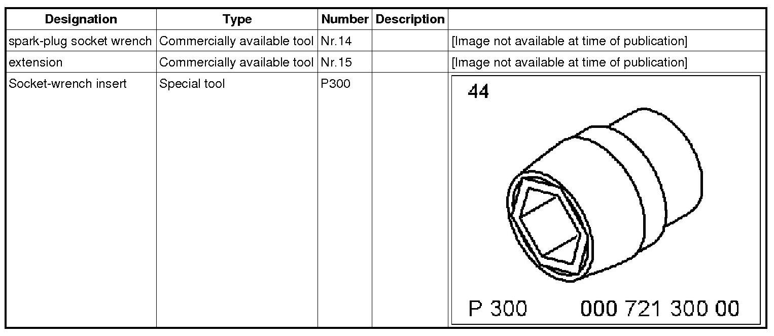 1. Fit spark plug using spark-plug socket wrench Nr.14 and extension Nr.15 and tighten to the specified tightening torque.