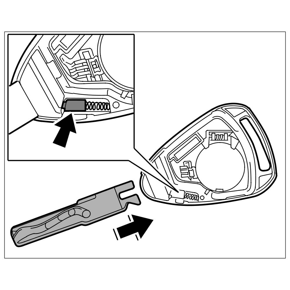 1. Push the key into the bottom part until the sliding latch -arrow- engages perceptibly.