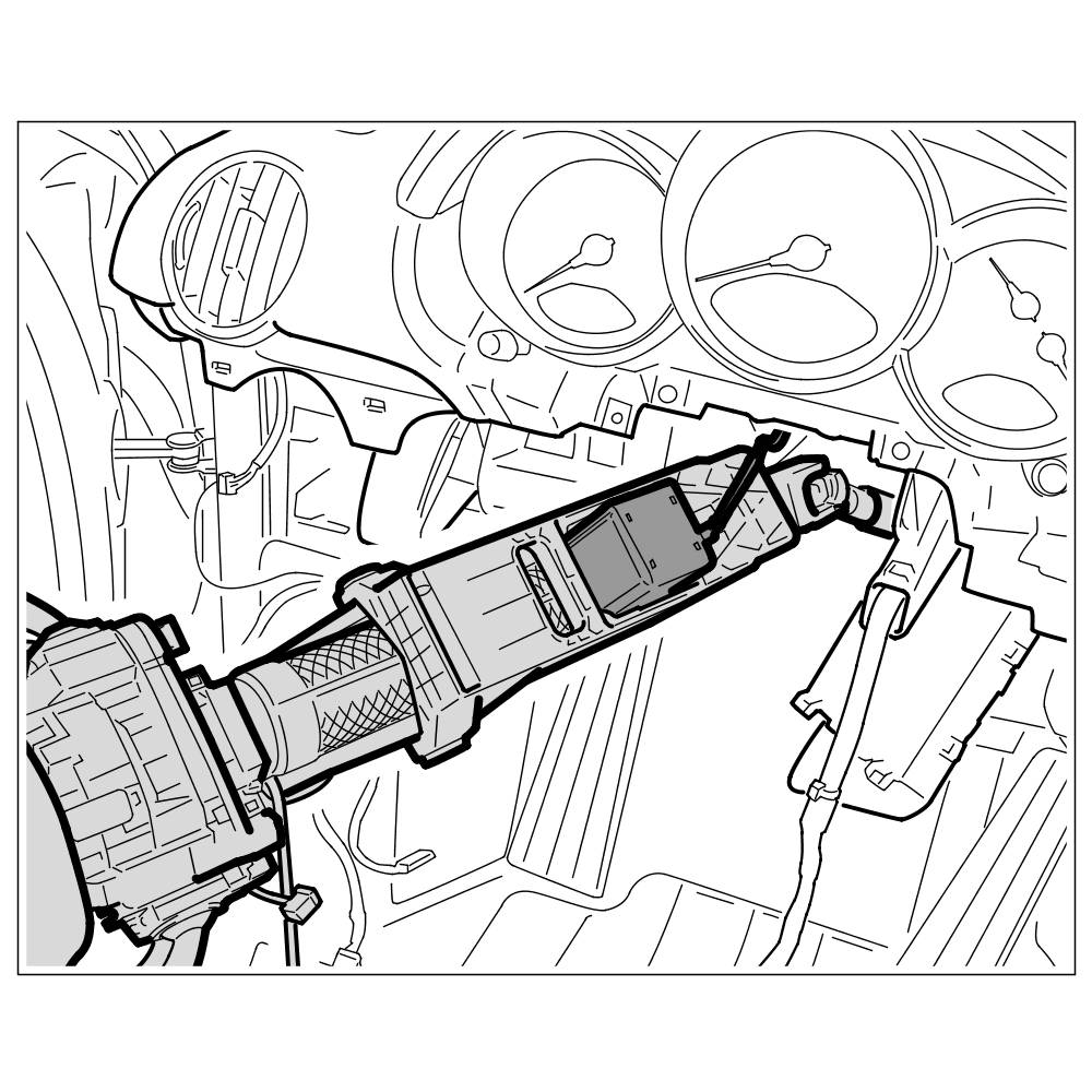 1. Check the installation position of the plastic guide for the ELV control unit and insert the plastic guide into the opening in the steering column.