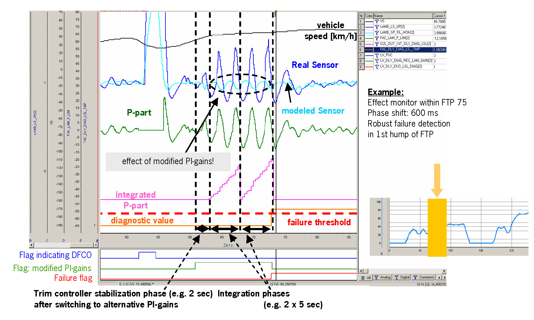 - Determination of the diagnostic samples by integrating the trim control P-share for 5 sec