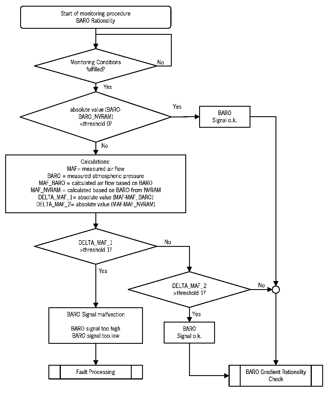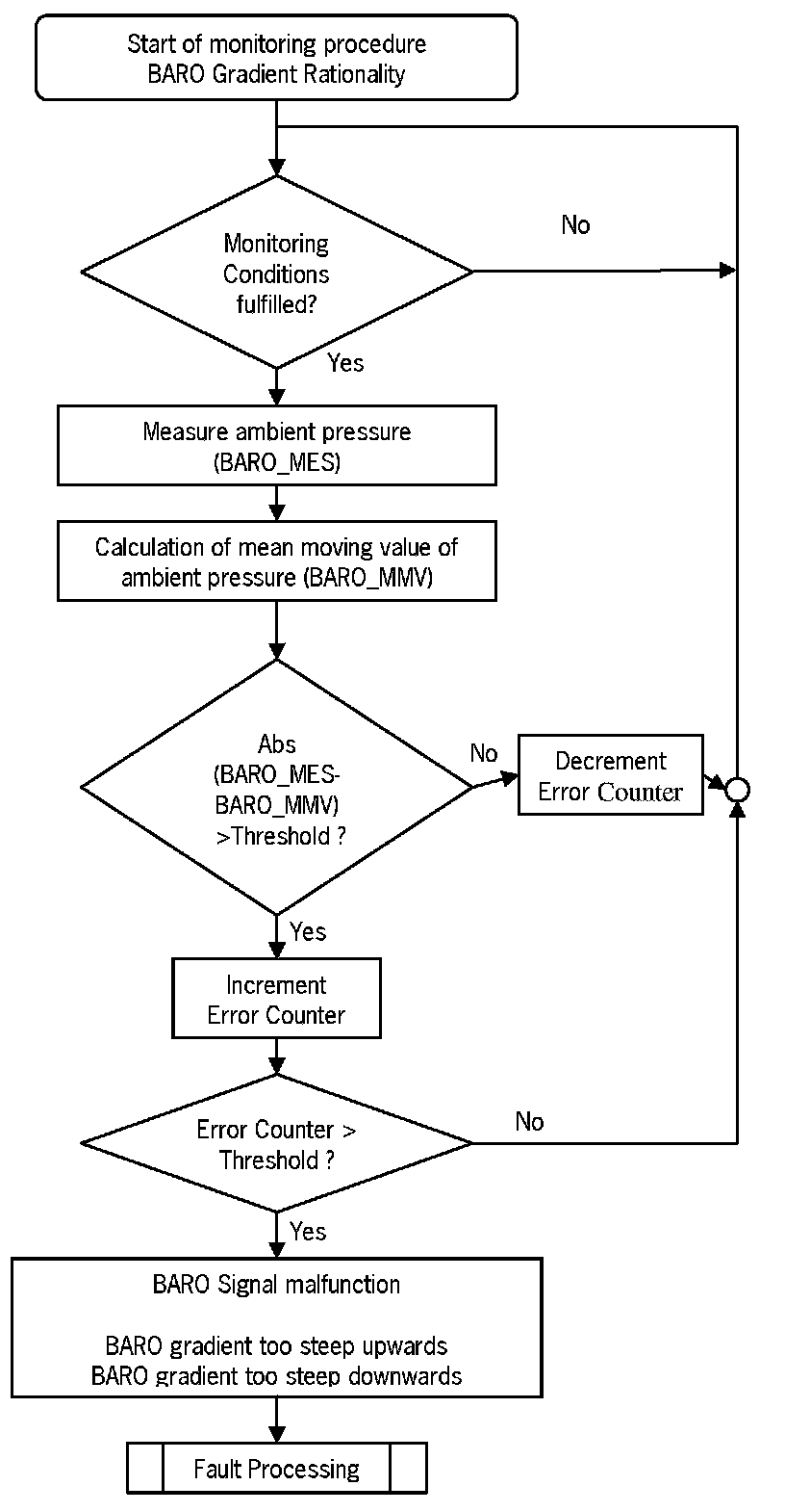 In the ambient pressure gradient check the difference calculated out of the measured ambient pressure and the moving mean value of the ambient pressure is compared to a calibratable threshold. If the delta exceeds the threshold the error is set.