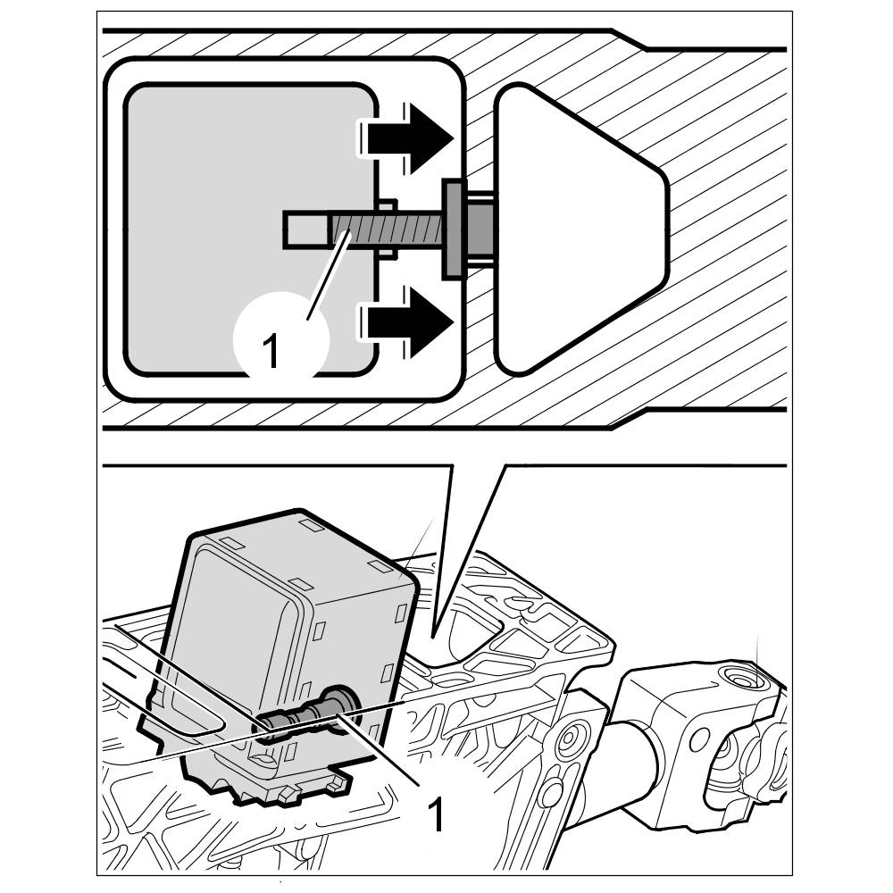 3. Unscrew the fastening screw -1- on the ELV control unit until the fastening screw -1- connects with the steering column. => Tightening torque: 6 Nm (4.5 ftlb.)