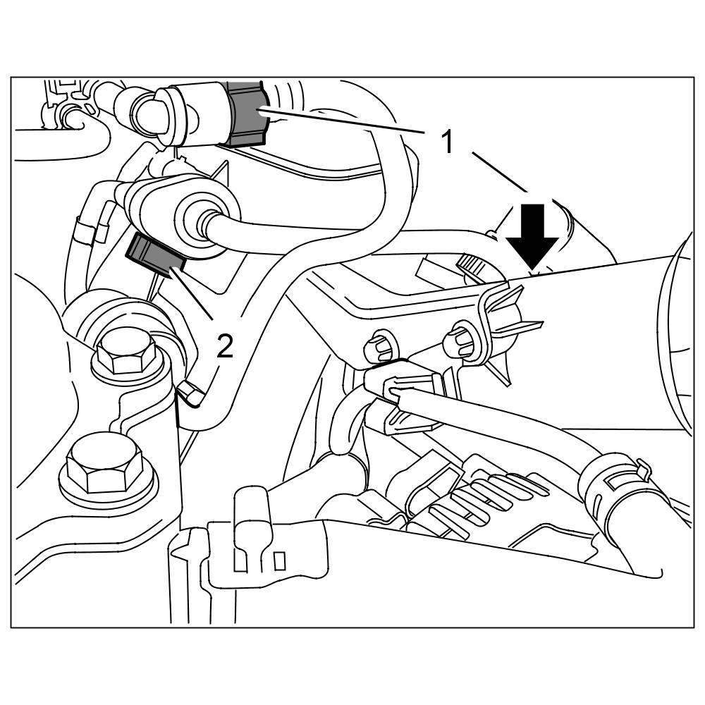 3.1. Unclip line at the resonance tube -arrow- and feed line for the carbon canister -1- and set them aside.