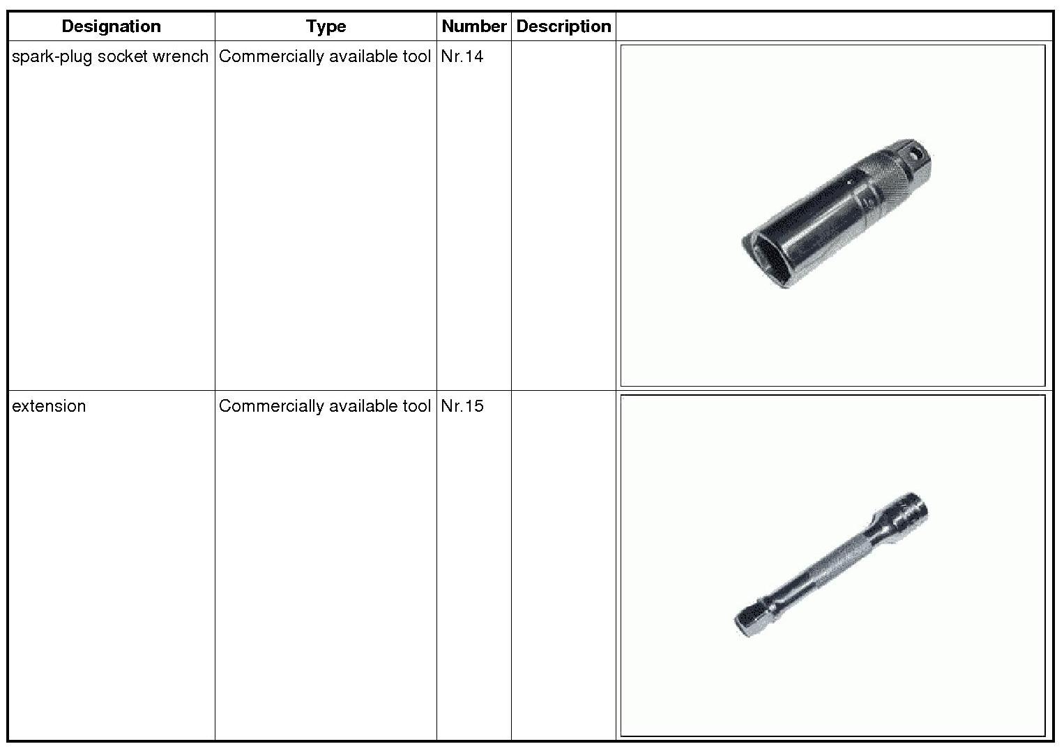 1. Unscrew spark plugs using spark-plug socket wrench Nr.14 and extension Nr.15.