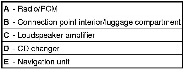 MOST control units, variant A - B - D - E, shown on the 911