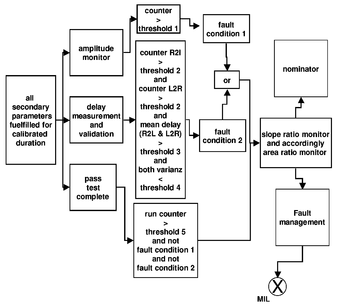 - The variance (statistics: relative variance) of every measurement necessary for fault detection is less than a calibrated threshold (typical value: ~0.02-0.1)