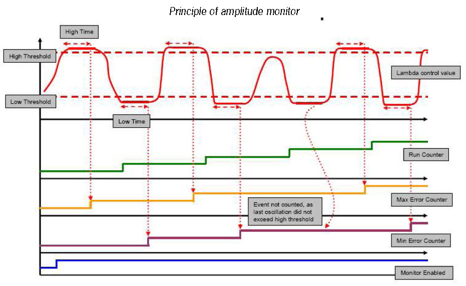The amplitude monitor evaluates the amplitude of the lambda control output.