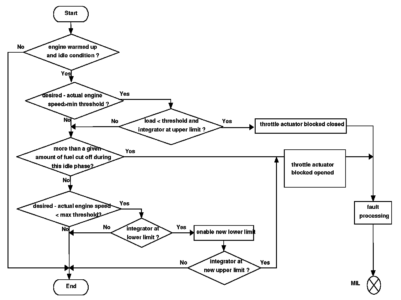 The diagnosis of the idle speed control checks the behavior of the integrator, while taking into account actual engine speed.