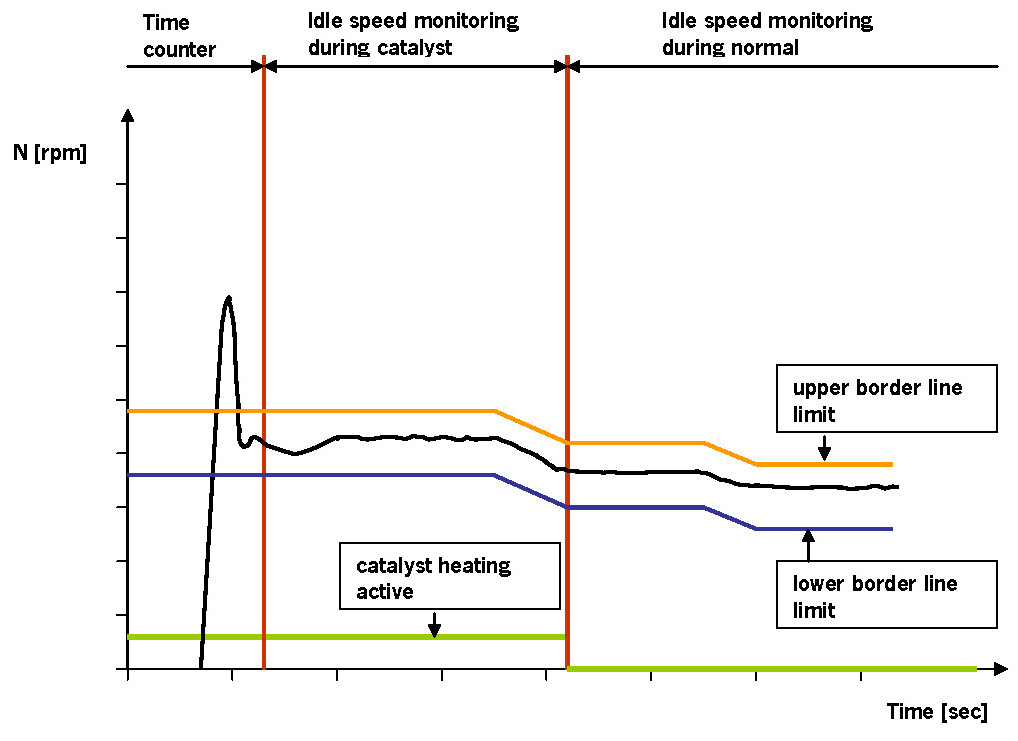 The following chart shows the working principle of the idle speed monitoring: