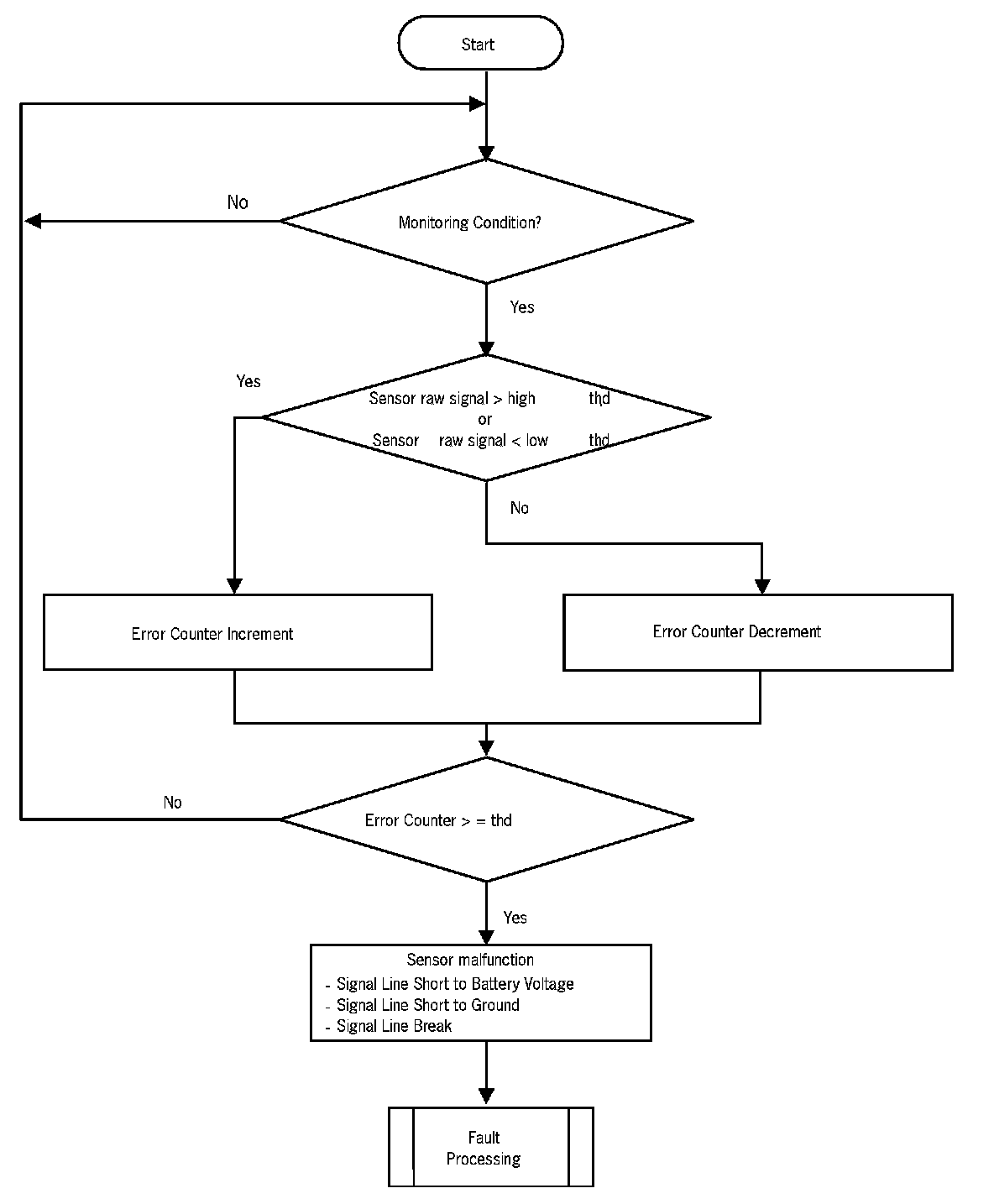 - Sensor signals out of a defined range are regarded as circuit malfunctions shorted to BATT, GND or Open circuit.