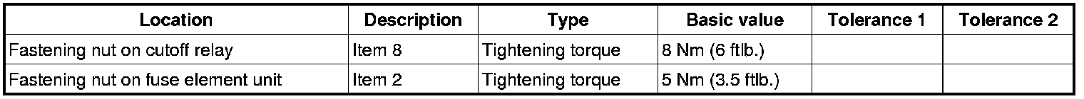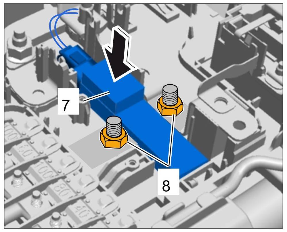 2. Tighten two fastening nuts -8- on the cutoff relay -7- to => Tightening torque: 8 Nm (6 ftlb.).