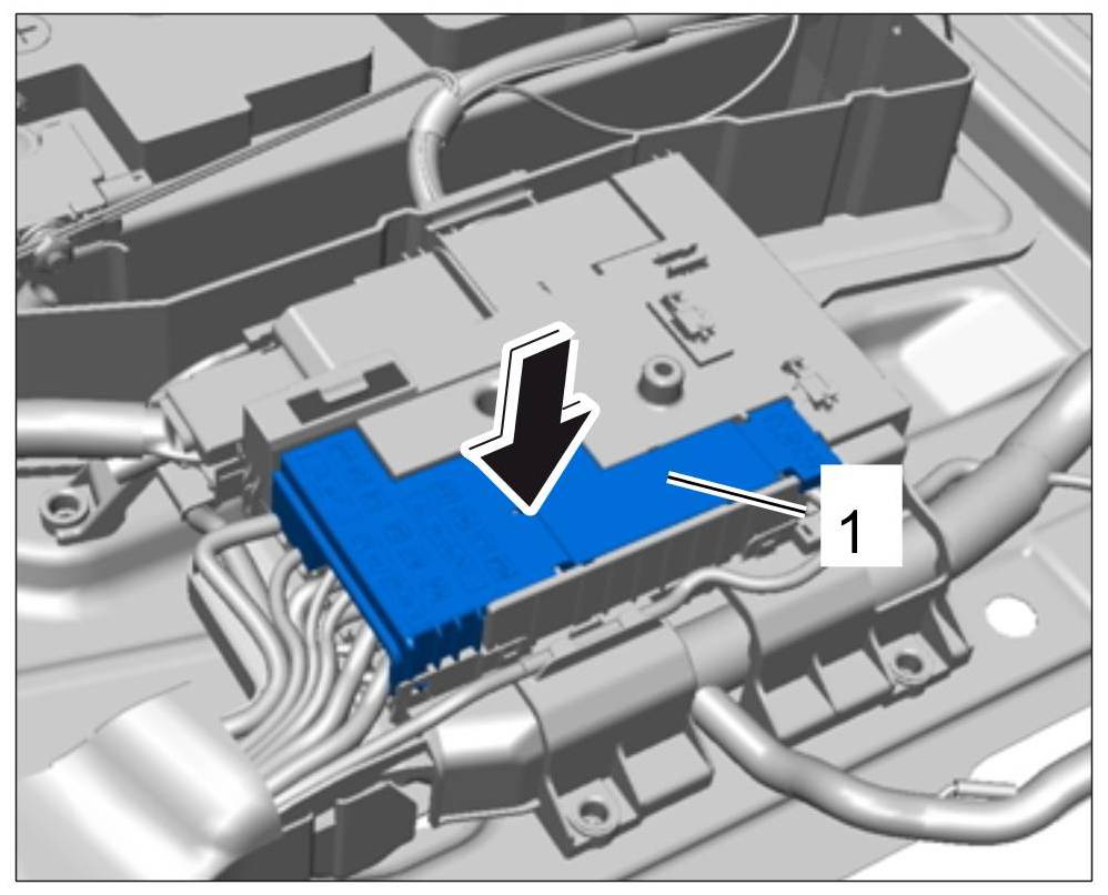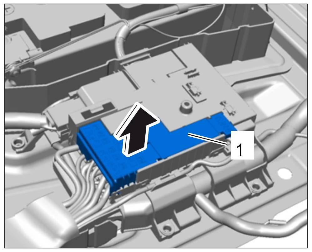 2. Unclip the small plastic cover -1- and remove it by pulling it upwards.