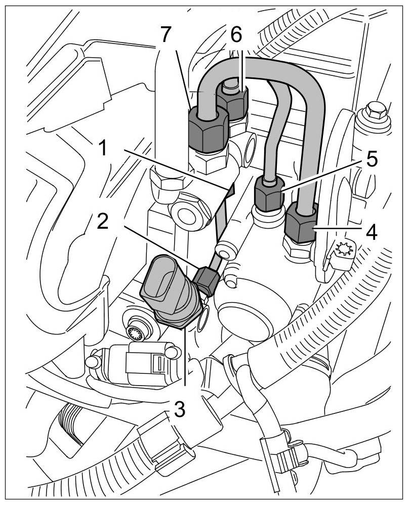 5. Check high-pressure distributor pipe for leaks. Following a test drive, visually inspect the high-pressure sensor with a mirror and lamp at idle speed.