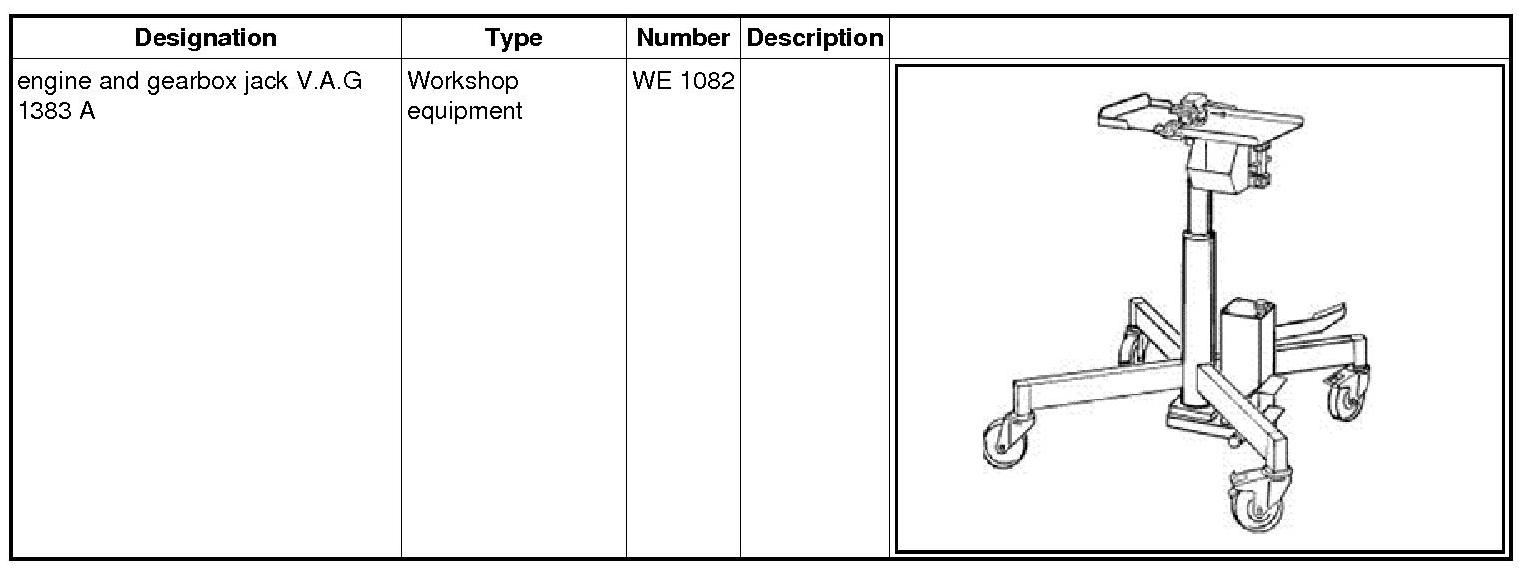 6. Support the transmission using engine and gearbox jack V.A.G 1383 A WE 1082.