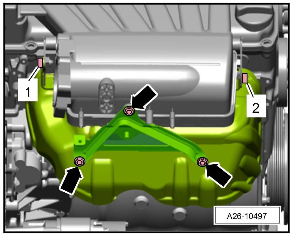 1. Remove engine guard. -> 108019 Removing and installing engine guard 108019 Removing and installing engine guard