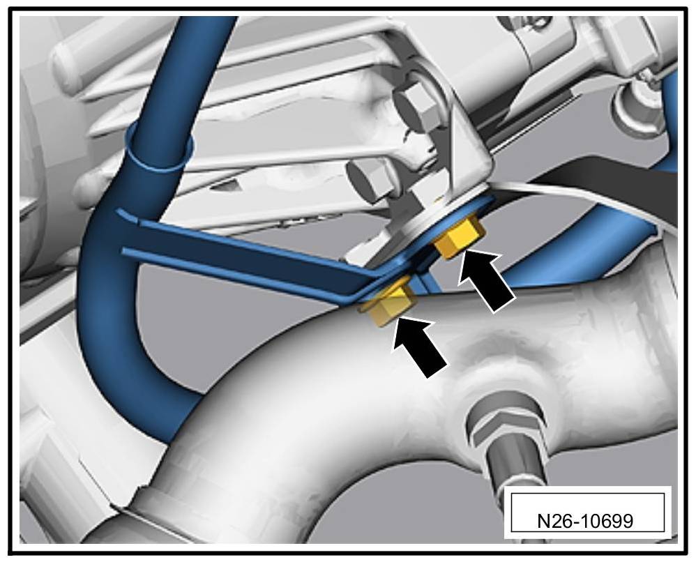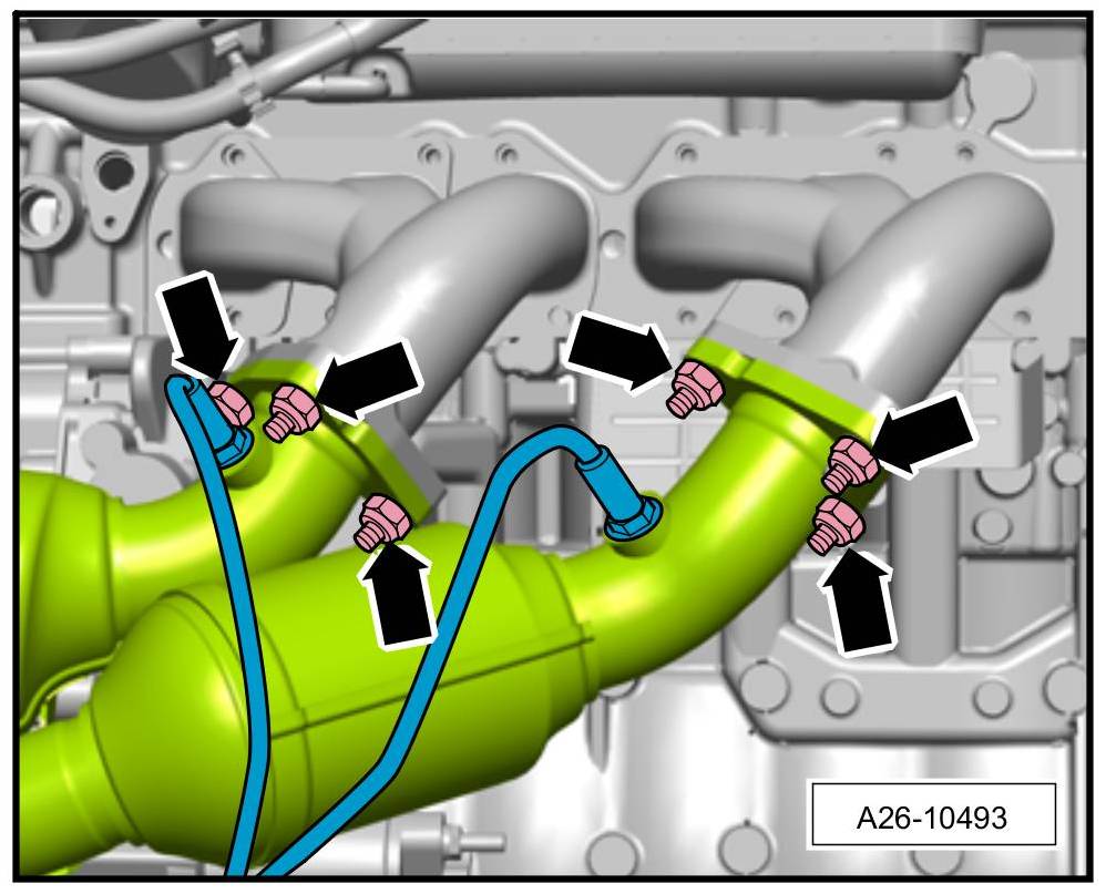 4. Unscrew fastening screws -arrows- for the catalytic converter on bank 1.