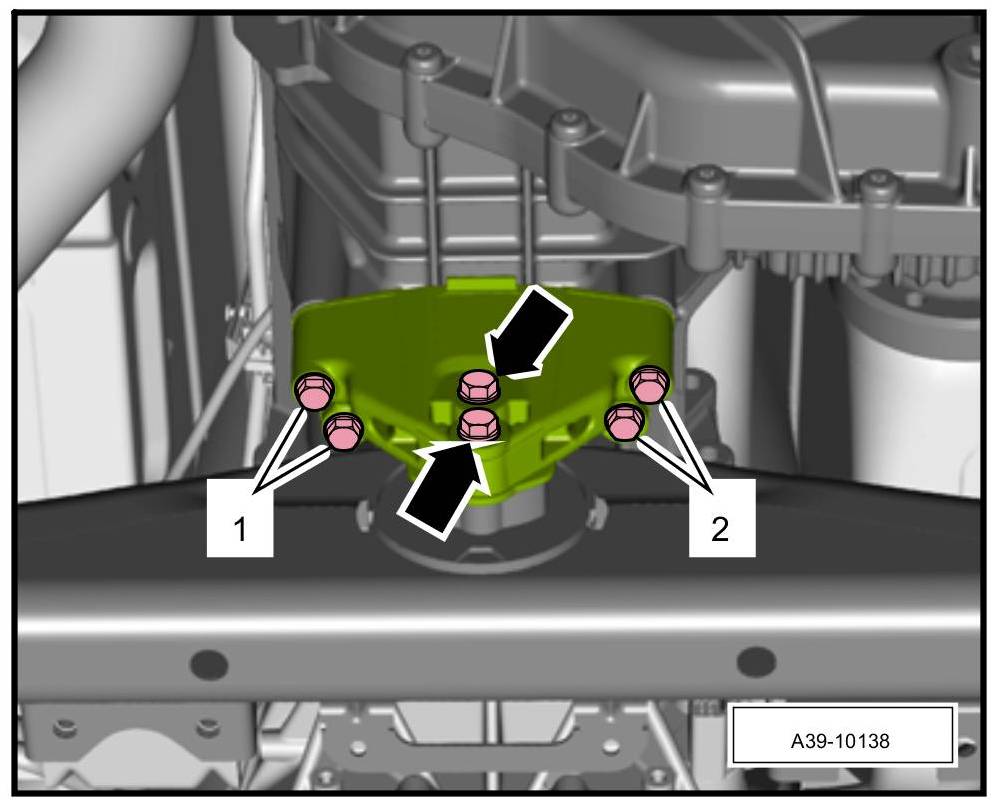 7. Unscrew screws -1- and -2- for the transmission support.