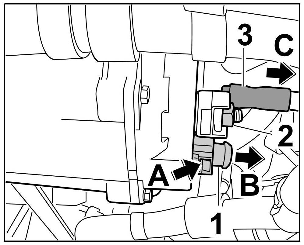 1. Release the connector -1- and unplug it -arrow A- ( -arrow B- ).
