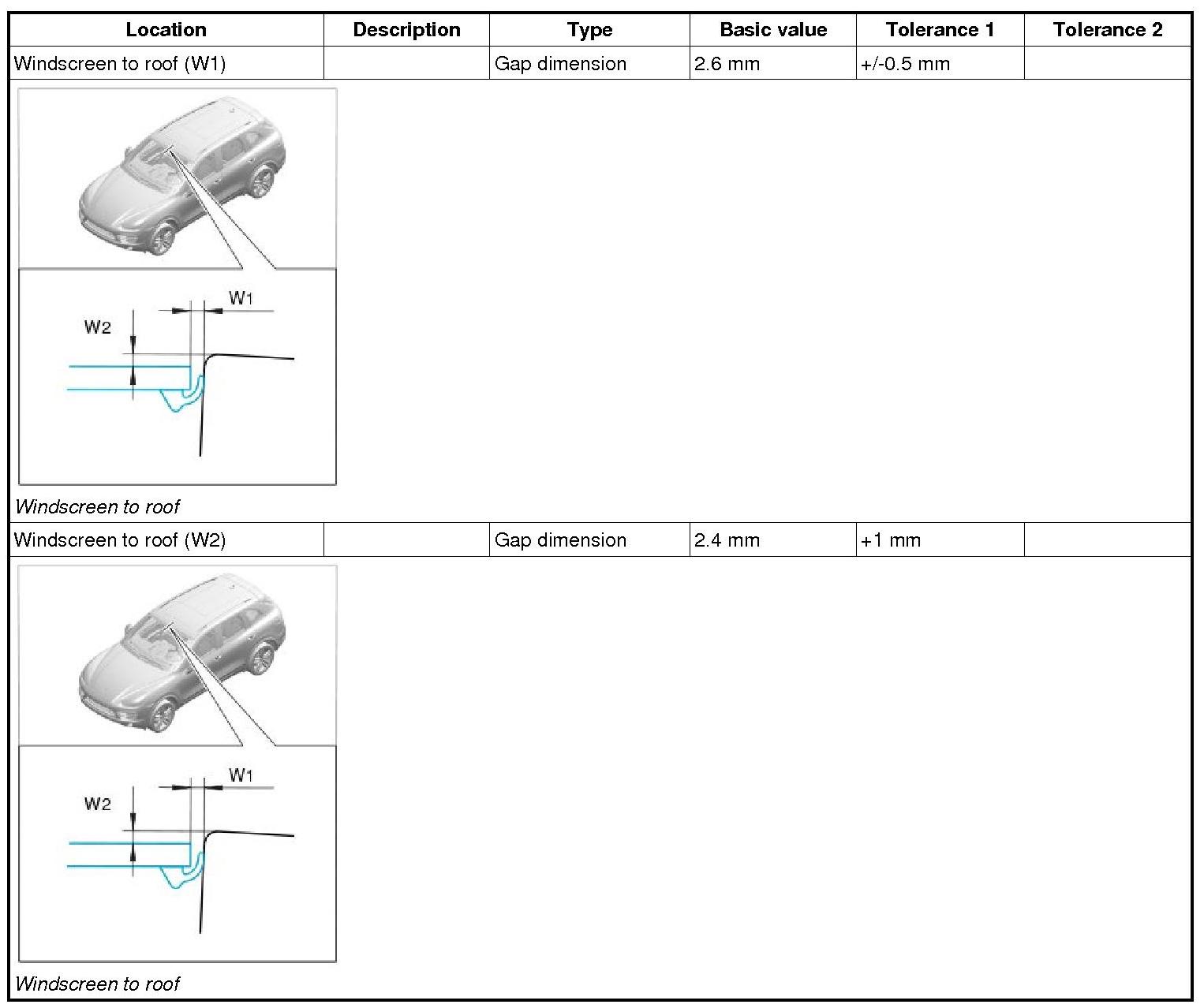 Gap dimensions of windscreen