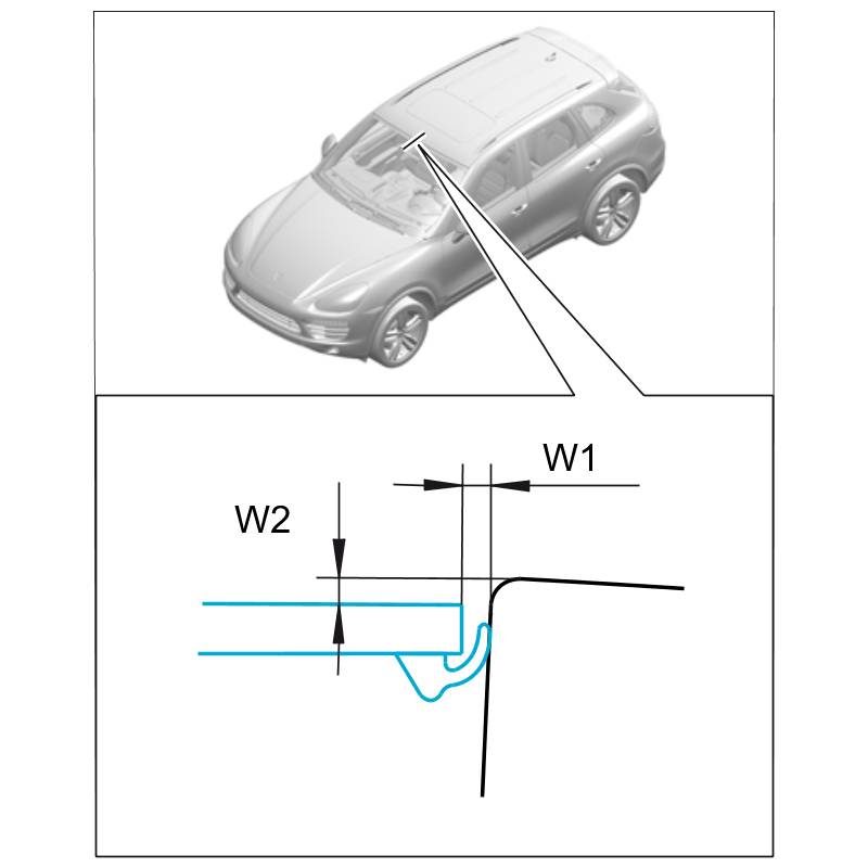 2.1. Clean new paint areas or damage to the top coat paint in the non-visible area of the window aperture in the body with cleaning solution -H1- and touch up with primer -H2-.