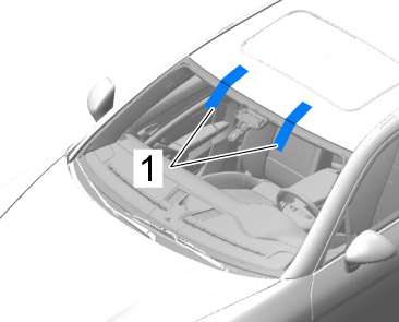 1. Secure headliner at the front. -> 708419 Removing and installing headliner - section on "Installing" Service and Repair