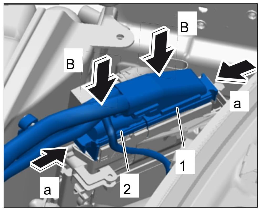 2. Plug in electric plug connection -2- ( -B- ) and lock it -a-.