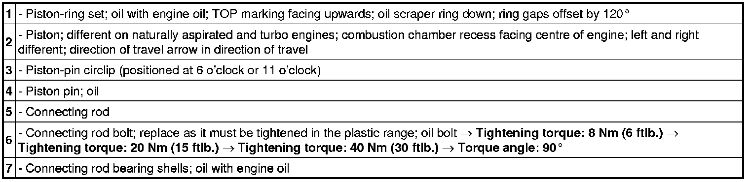 WM 1001IN Tightening torques, tightening sequences, assembly overviews for engine